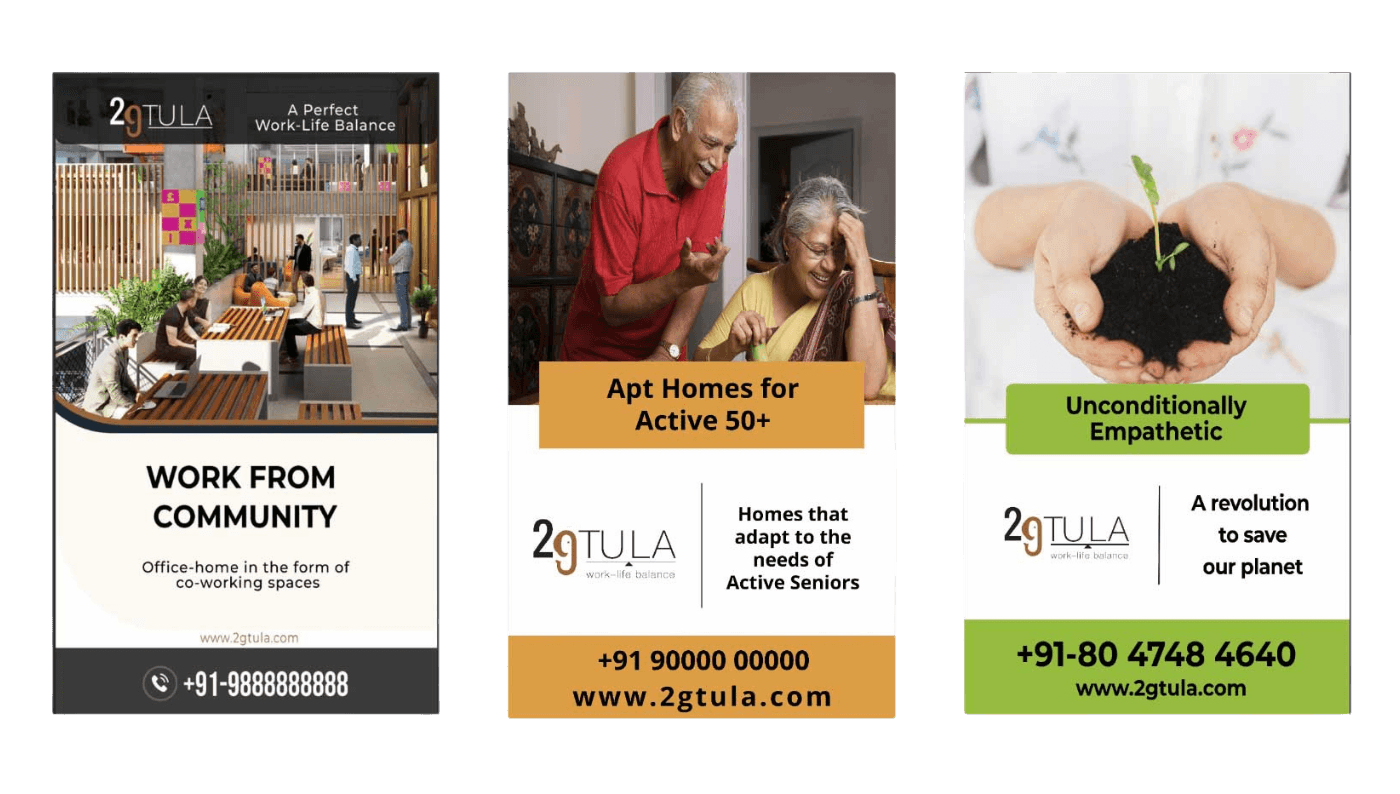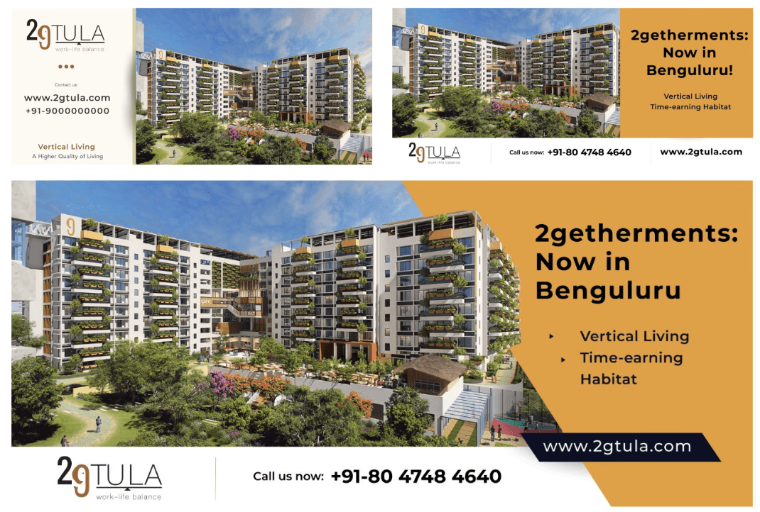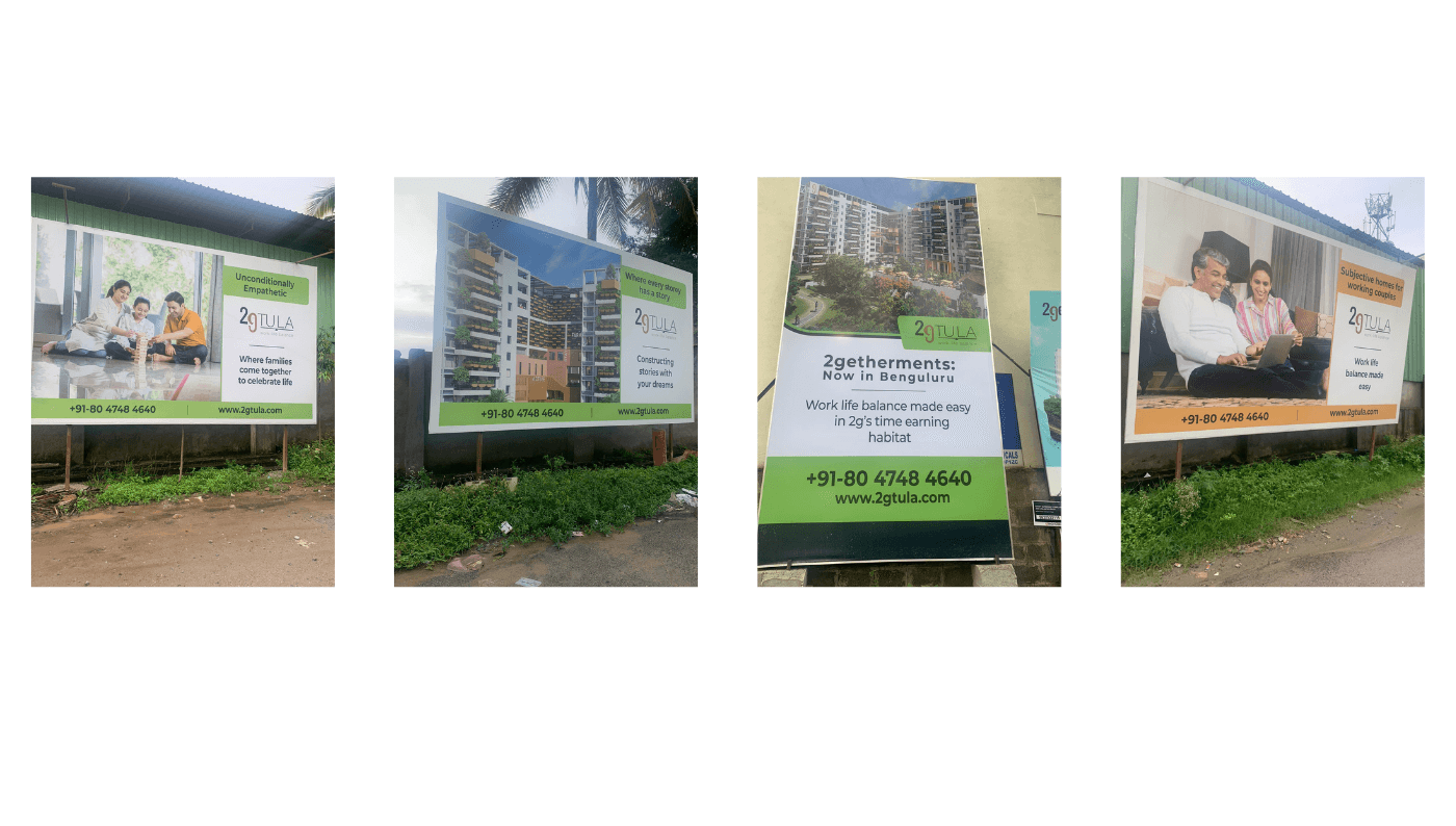 As part of the expansion of Organo’s eco-habitat vision, the client required hoardings for a new project launch in Bangalore, India. The hoardings needed to reflect the core philosophy — “Eco-habitats that Celebrate Living” — while staying clean and minimal.